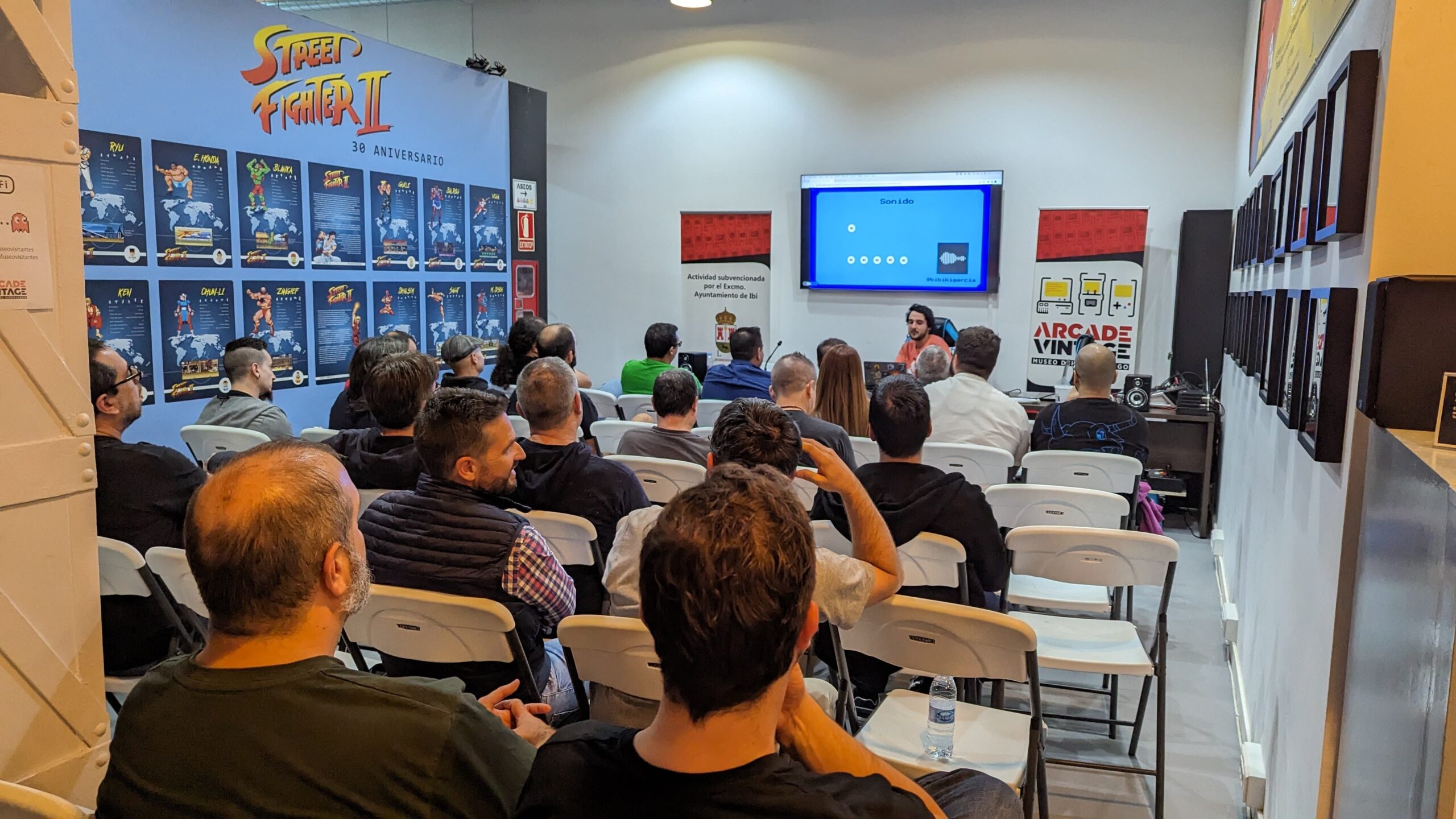 El primer día consistió básicamente en la recepción de los asistentes. El propio staff del Museo Arcade Vintage también estuvieron disponibles en ayudar a quien lo necesitara con la ubicación de los alojamientos y el propio Museo. La planta superior ya estaba preparada por todo lo alto para la recepción, con máquinas arcade, consolas y ordenadores, más la barra libre con aperitivos. Y por la noche preparado un torneo de Street Fighter II para los que tuvieran ganas de «pelea».