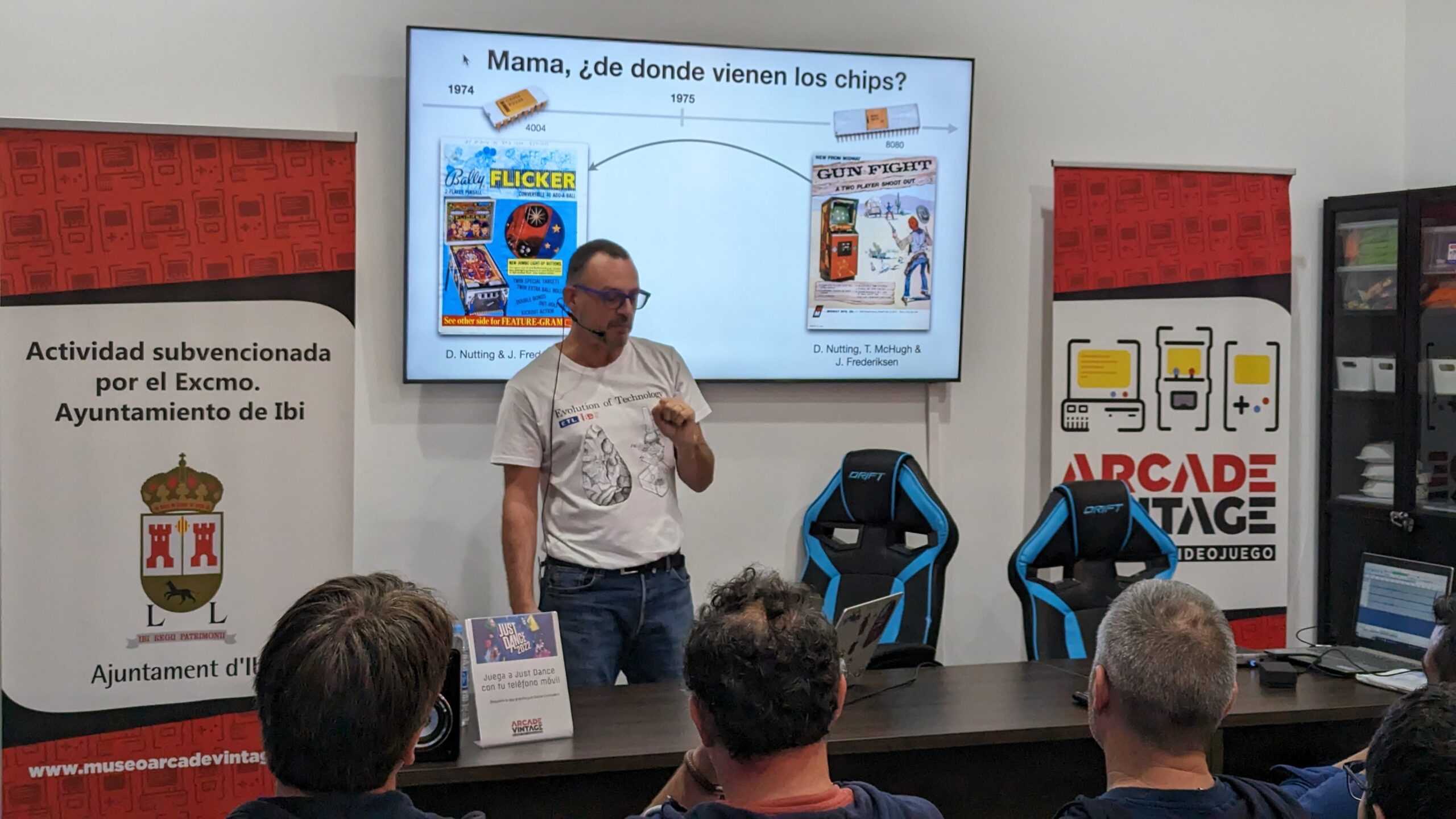 Sergi Valverde, un gran divulgador e investigador del CSIC, realizó una increíble presentación sobre la evolución de los videojuegos arcade, exponiendo impresionantes hallazgos durante todo el proceso evolutivo de los videojuegos arcade.