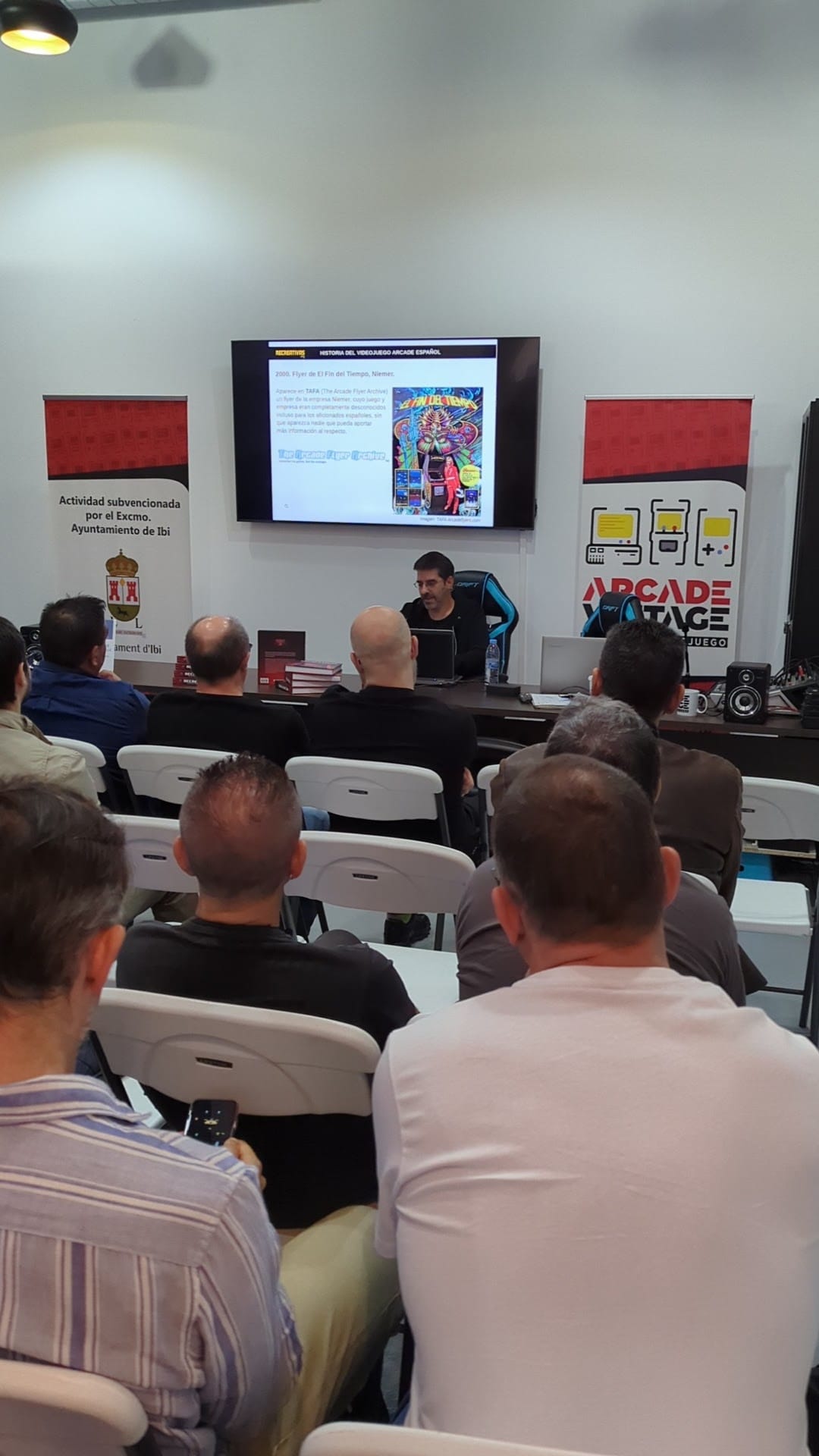 Algunos de los ponentes junto a los hermanos Joaquín y Jose Litarte, artífices de Arcade Vintage.